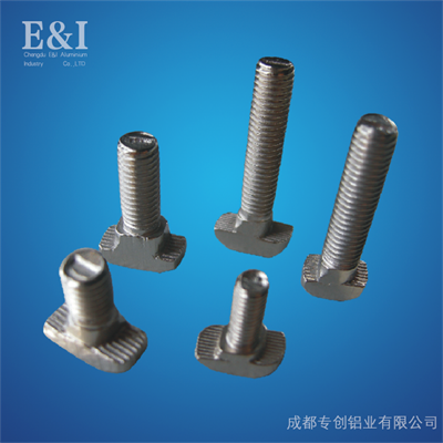 T型螺栓直接放入型材槽內,安裝過程中它能自動定位鎖緊,常與法蘭螺母配合使用,是安裝角件等常用型材配件。根據不同型材、槽寬及安裝要求可選用不同規格及長度的T型螺栓。